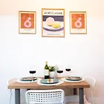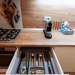 - ❓Există o bucătărie disponibilă la apartamentul pentru oaspeți?Da, apartamentul dotată cu o bucătărie complet echipată și oferă echipamente pentru cafea/ceaiului, un cuptor și sticlărie.